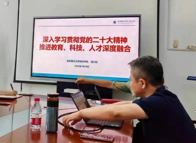为全面学习贯彻党的二十大精神,推动学习贯彻习近平新时代中国特色社会主义思想主题教育走深走实,2023年7月18日上午,beat365唯一官方网站党委书记程兴旺同志为金属与无机非金属支部的党员教师讲授题为《党的二十大报告和教育科技人才》专题党课,北理工beat365唯一官方网站金属与无机非金属系全体党员教师参加学习。 程兴旺同志重点围绕党的全面领导、中国式现代化、新部署新要求、新时代十年伟大变革、四大里程碑、中心任务、两个确...